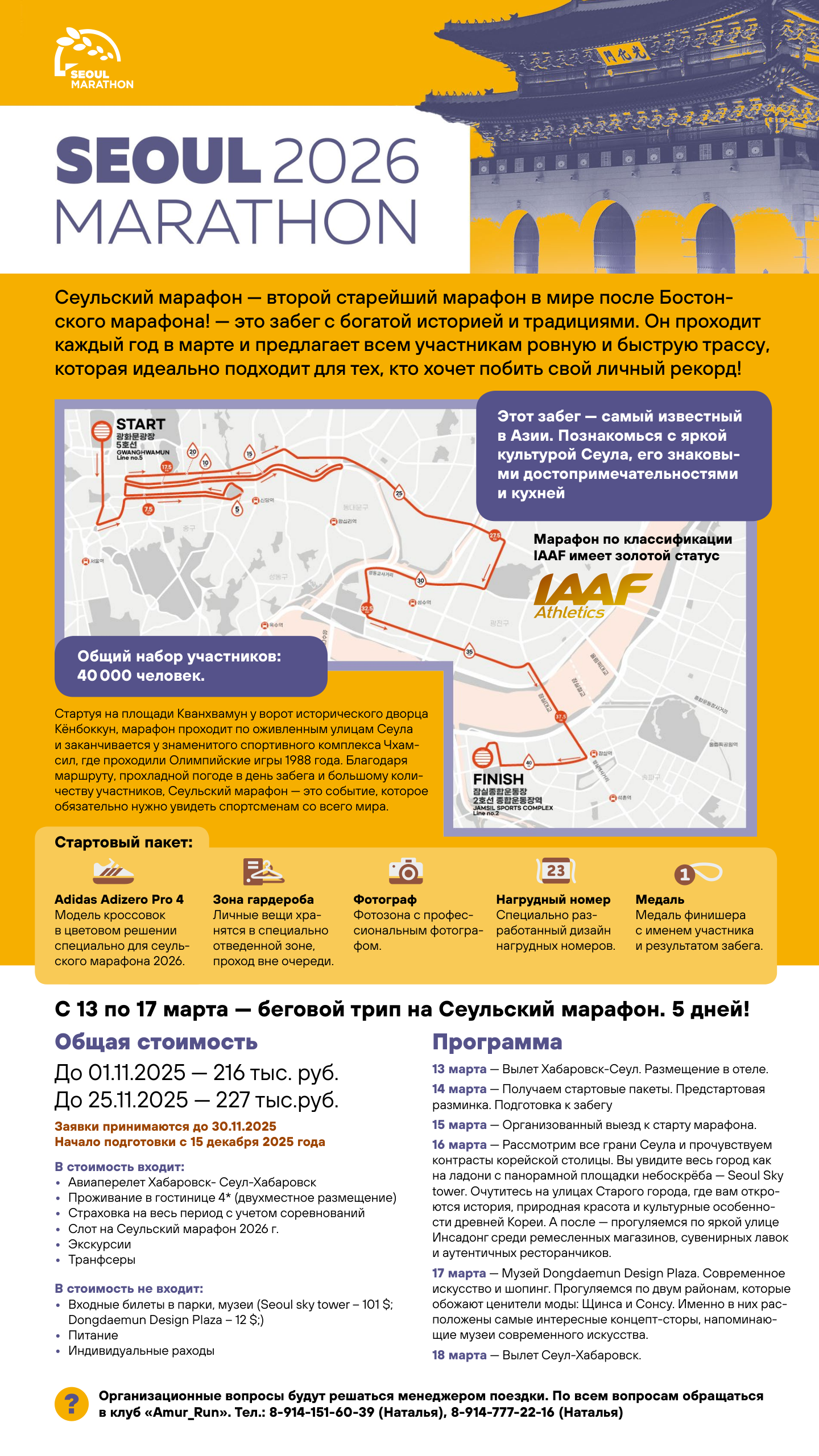С 13 по 17 марта – Беговой трип на Сеульский марафон. 5 дней!